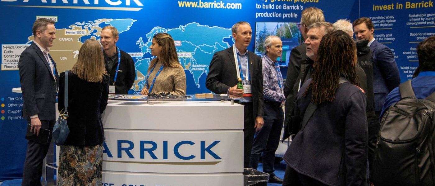 Attendees speak with representatives at the Barrick booth, at the Prospectors and Developers Association of Canada (PDAC) annual mining conference in Toronto, Ontario, Canada March 3, 2025.