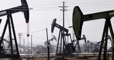 An oil pumpjack in a field in Grandfalls, Texas, on March 24, 2024.